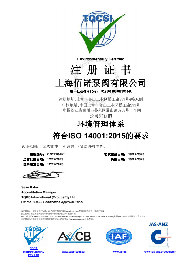 環(huán)境證書-英文