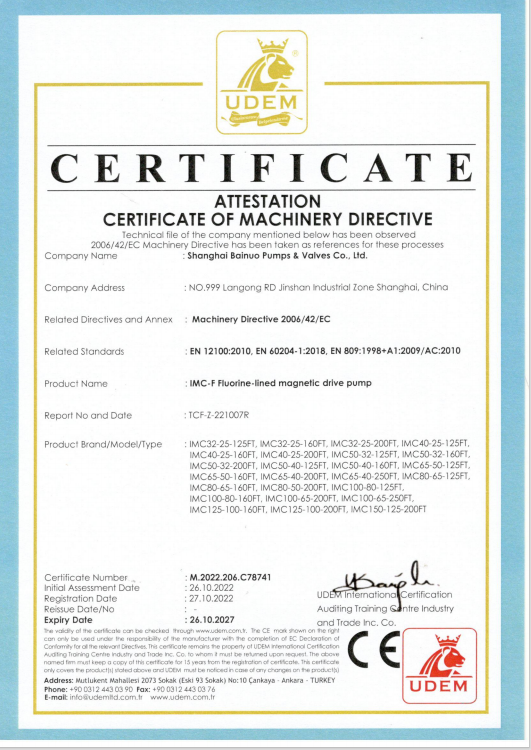佰諾主要生產(chǎn)磁力泵、屏蔽泵、化工泵,自吸泵,隔膜泵,排污泵,管道離心泵等工業(yè)泵,產(chǎn)品具有安全、高效、環(huán)保、節(jié)能的特性,2010年打造可連續(xù)空載的磁力泵使磁力泵無液空載運(yùn)行成為可能,佰諾堅持以“磁力驅(qū)動流體,綠色捍衛(wèi)化工”的發(fā)展戰(zhàn)略,形成了以自主知識產(chǎn)權(quán)為核心的技術(shù)體系,國家高新技術(shù)企業(yè),上海專精特新企業(yè),上海金山區(qū)科技小巨人。