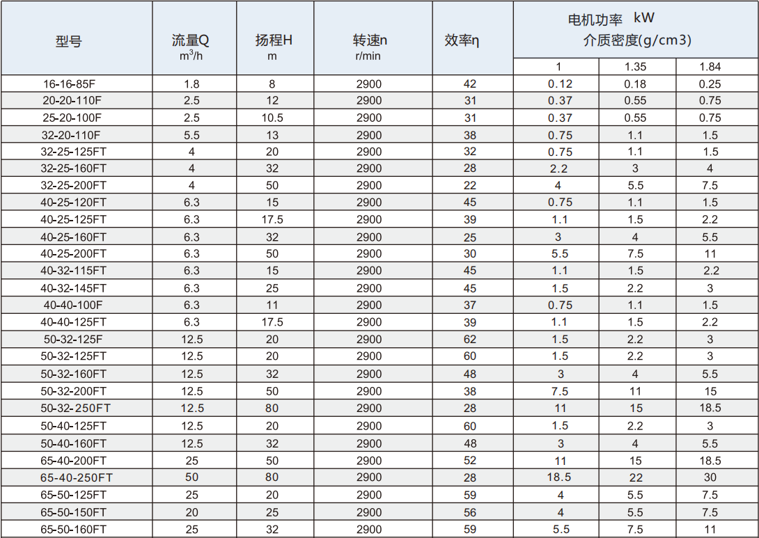 1.泵體內(nèi)襯、葉輪內(nèi)轉(zhuǎn)子,隔離套均采用純凈的PFA材料一次性模壓而成,無(wú)雜質(zhì)析出,非常適用于輸送高純度、高腐蝕性的化學(xué)液體; 2.泵體外殼采用球墨鑄鐵,泵體按標(biāo)準(zhǔn)法蘭設(shè)計(jì),機(jī)械強(qiáng)度較好,并且能承受重型管道負(fù)荷; 3.過(guò)流部件內(nèi)襯F46或PFA材料,具有六道光滑順暢,水力性能優(yōu)越,水力摩擦損失小、效率高等特點(diǎn); 4.泵軸、軸承套、動(dòng)靜環(huán)均采用無(wú)壓燒結(jié)碳化硅,具有高硬度、高耐磨、高耐腐蝕性等特征; 5.軸承套內(nèi)孔獨(dú)特的螺旋槽設(shè)計(jì),使滑動(dòng)軸承副潤(rùn)滑較方便,較容易帶走泵運(yùn)轉(zhuǎn)時(shí)摩擦產(chǎn)生的熱量; 6.隔離套外面增設(shè)了采用進(jìn)口材料PPS特制而成的補(bǔ)強(qiáng)罩,使泵組可以承受較高的系統(tǒng)壓力,并且可以消除采用金屬套因磁渦流而產(chǎn)生的熱量; 7.內(nèi)外磁選用釹鐵硼材料,磁鋼表面高達(dá)3600高斯,可順利把原動(dòng)機(jī)的扭矩傳遞給葉輪,并且在大流量工況下也不會(huì)打滑,也可防止葉輪內(nèi)轉(zhuǎn)子與后止推環(huán) 接觸,從而防止因摩擦發(fā)熱而融化氟塑料部件,確保磁力泵在強(qiáng)腐蝕性的場(chǎng)合能正常運(yùn)行; 8.整個(gè)泵組采用后拉式結(jié)構(gòu),一個(gè)人便可進(jìn)行內(nèi)部檢修和零件更換,且不需要拆卸管道。